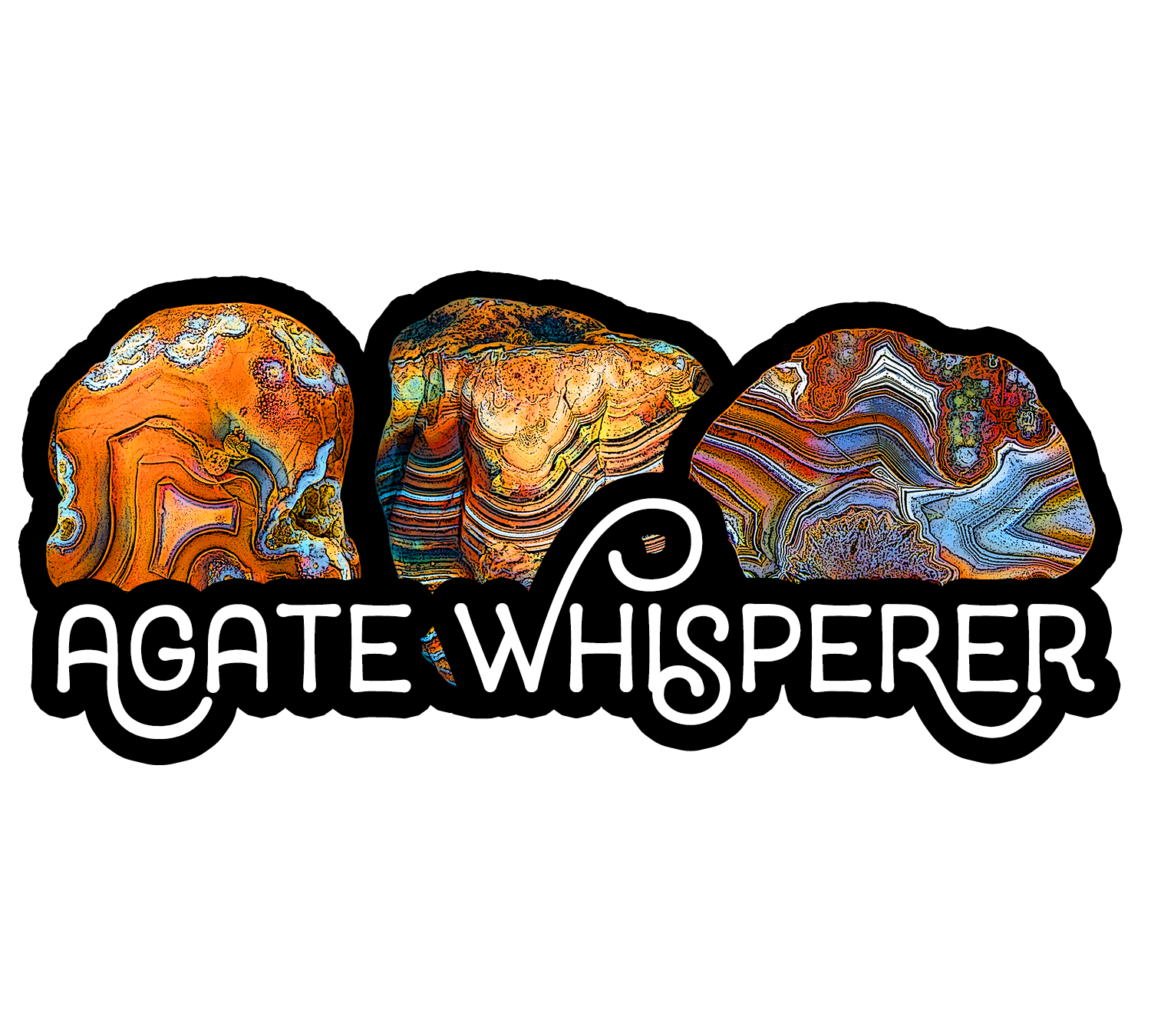Perfect rock-related gift for any "agate whisperers" you know. Design shows three gorgeous agates above the wording.