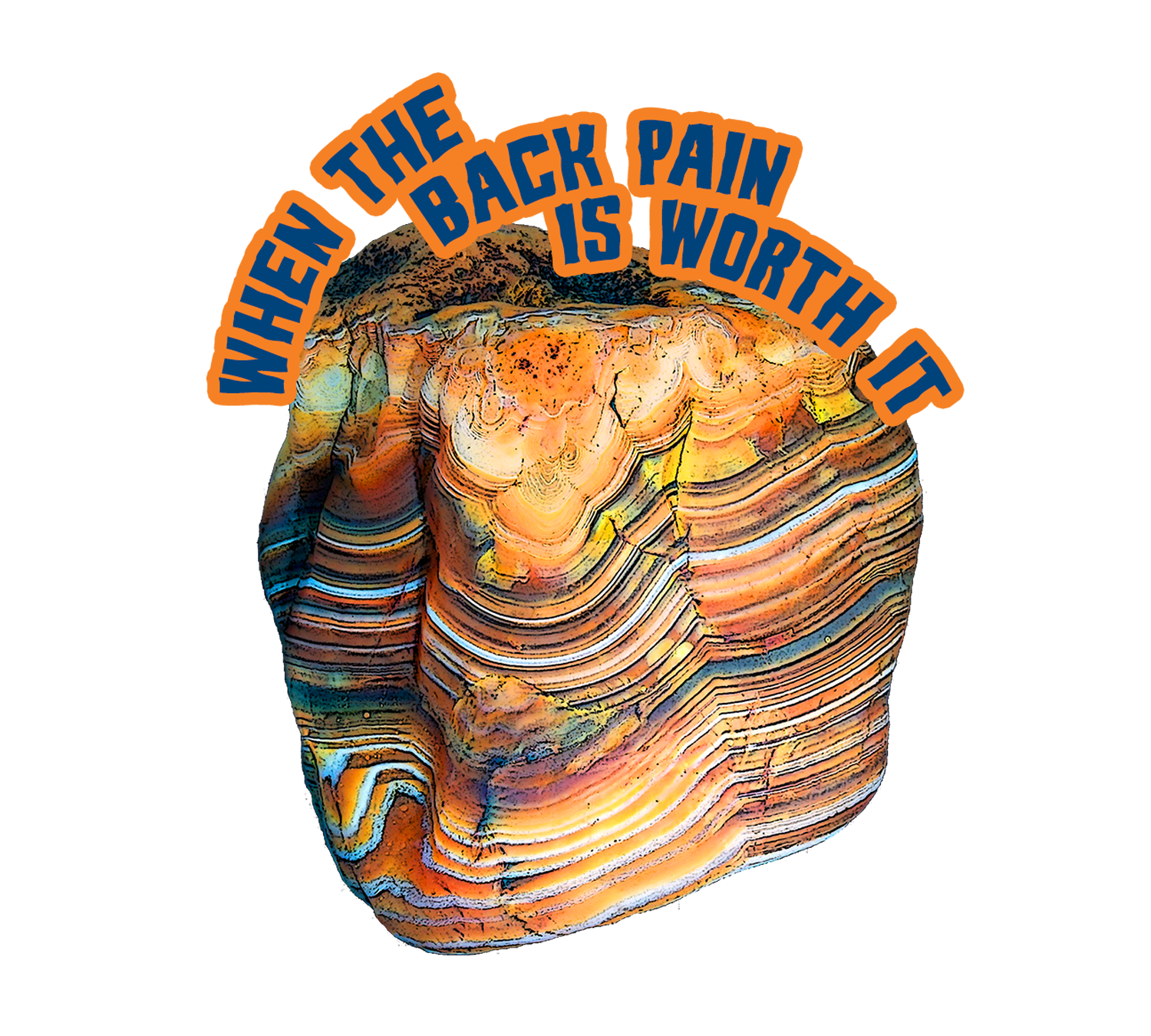 Rock hunters know "When the Back Pain is Worth It"! Design includes that wording with a gorgeous huge agate.