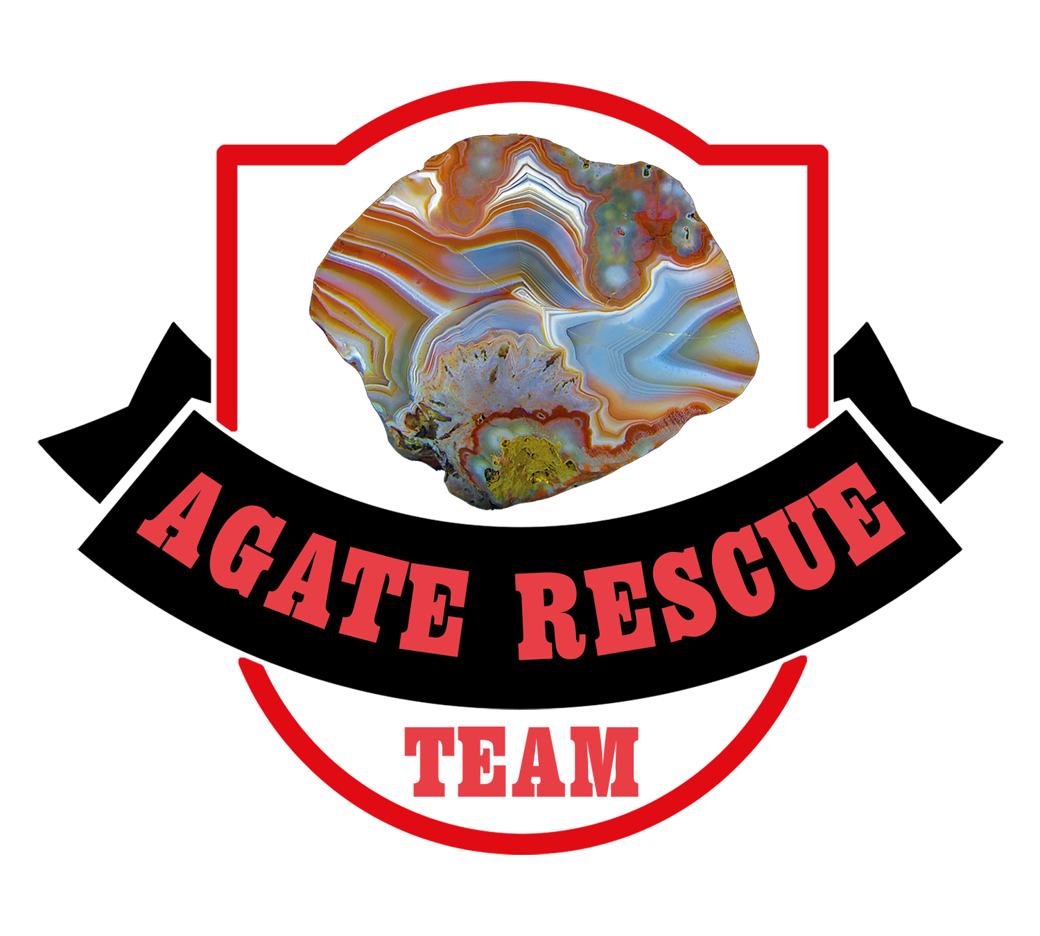 "Agate Rescue Team" - a dream job, right? Magnet features that text along with a ribbon and a gorgeous agate above it.