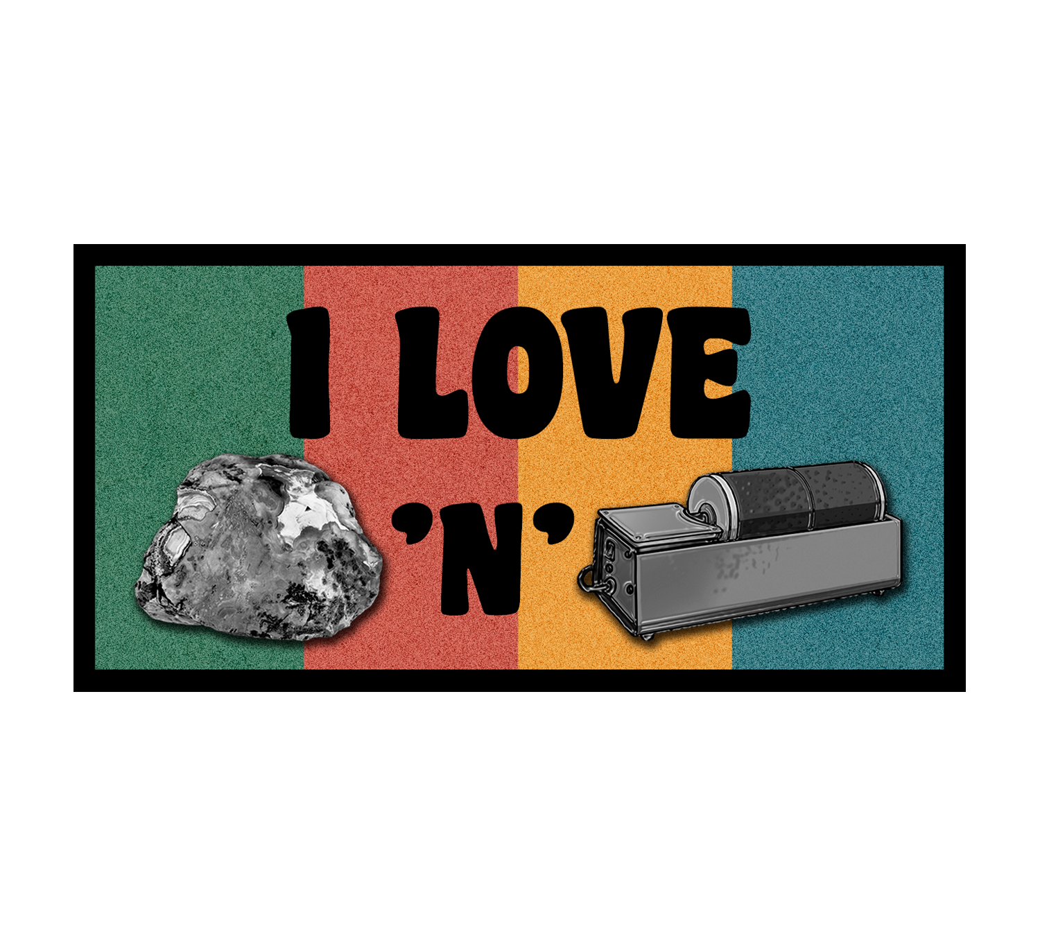 Sticker/magnet says "I Love Rock 'n' Roll" but there's a rock and a tumbler to represent the words.