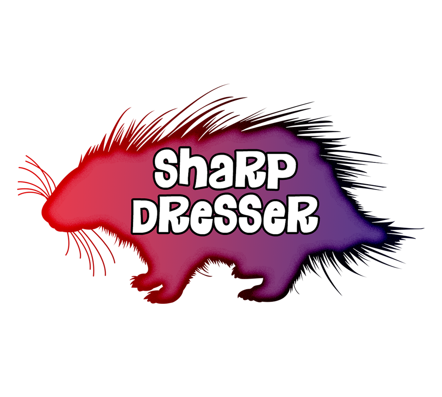 Magnet features the words "Sharp Dresser" on a cute porcupine with quills in a red-to-purple gradient. Perfect for fans of the Porcupine Mountains Wilderness State Park or anyone who loves porkies!