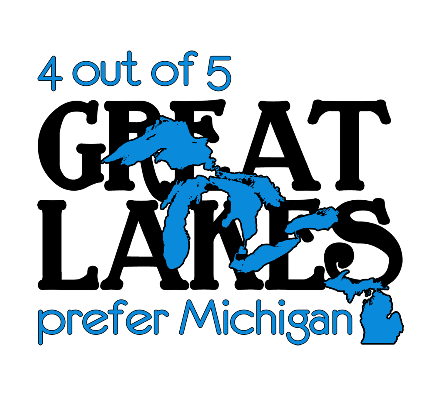Michigan residents know that "4 out of 5 Great Lakes prefer Michigan"! Sticker has the shape of the 5 Great Lakes and Upper and Lower Michigan.