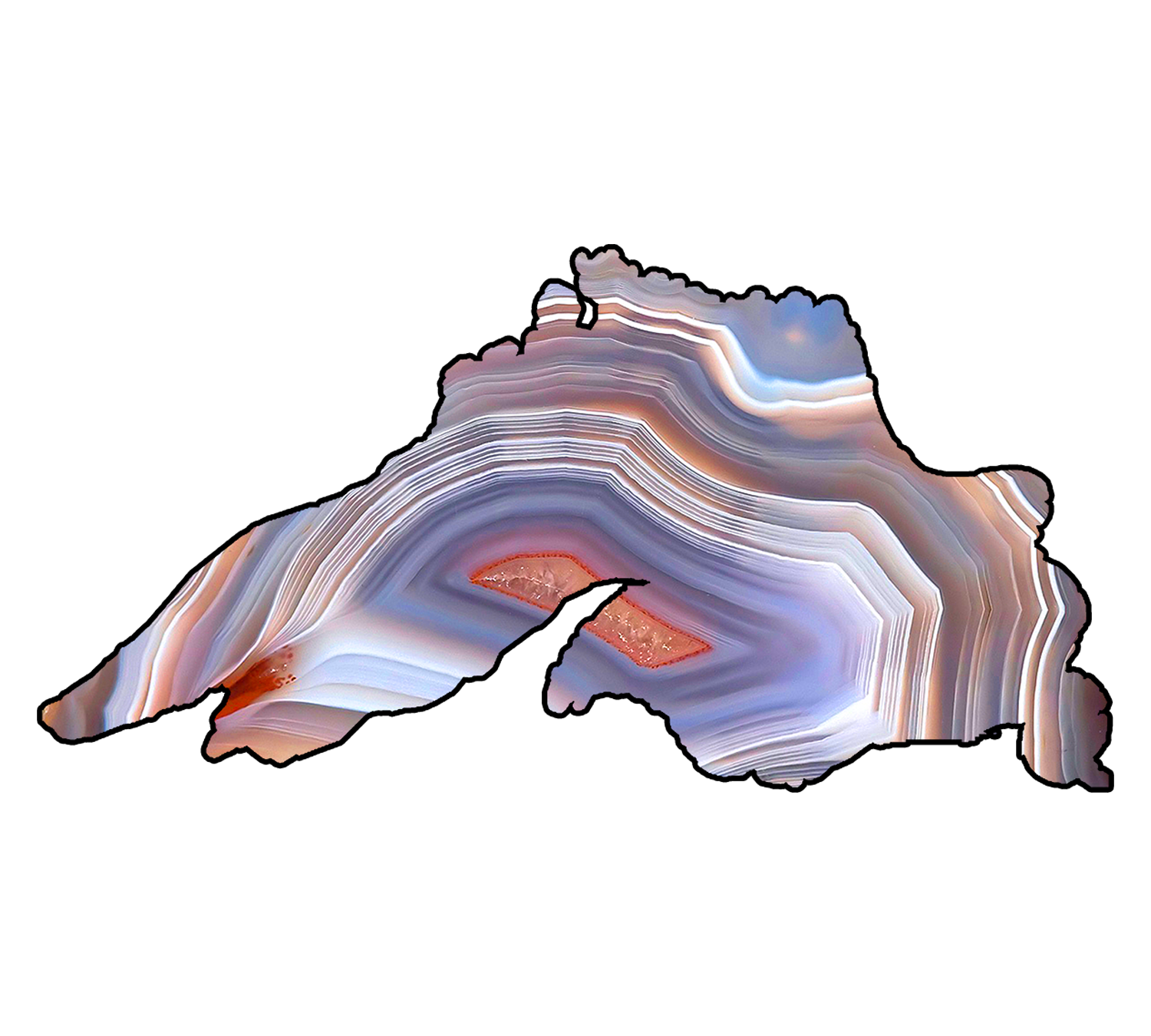 Rock hunter magnet features the shape of Lake Superior with a beautiful blue LS agate inside.