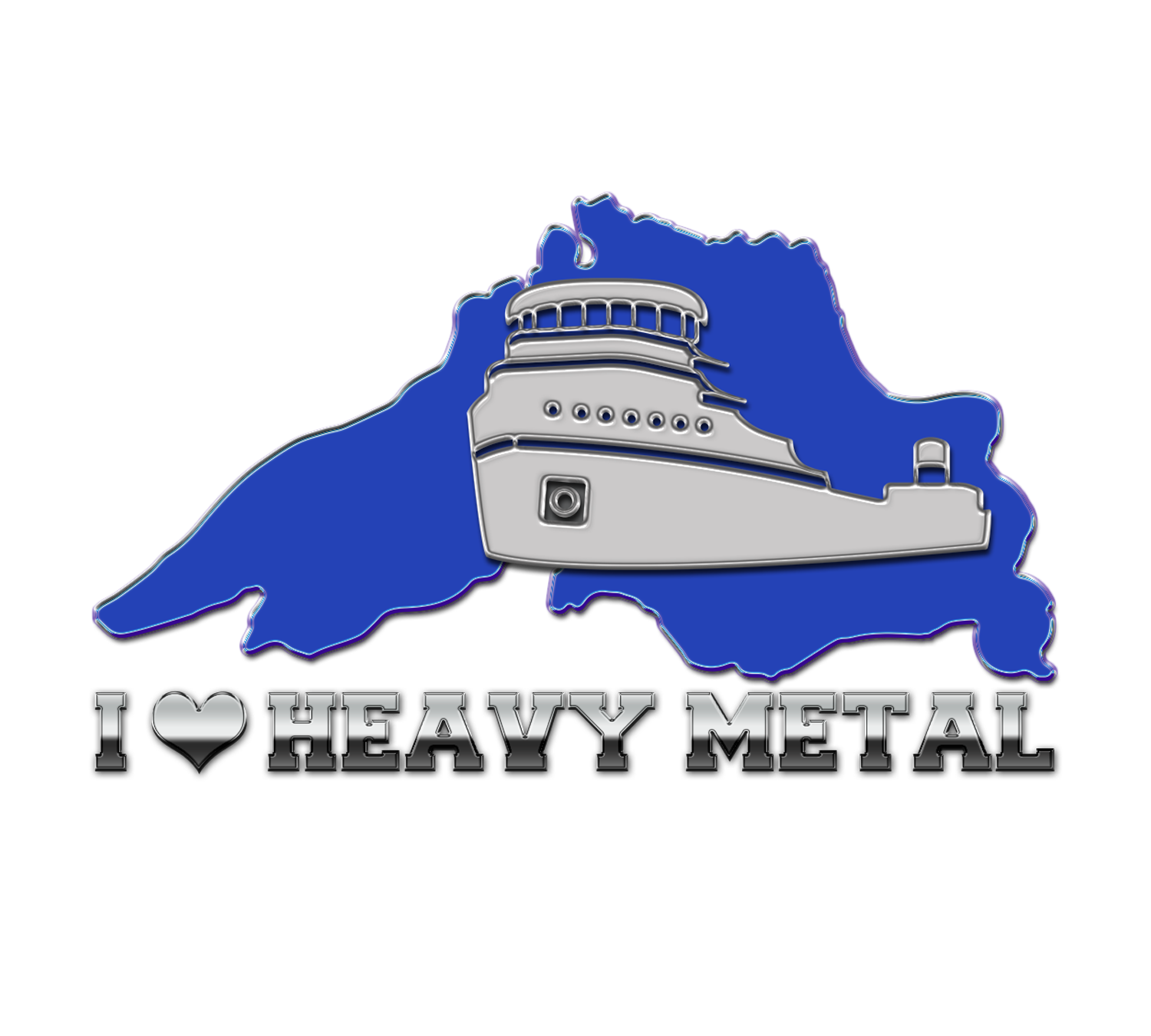 Lake Superior lovers who also love the freighters that ply its waters will love this magnet features the words "I [Heart] Heavy Metal" underneath the shape of the lake and a bulk carrier vessel.
