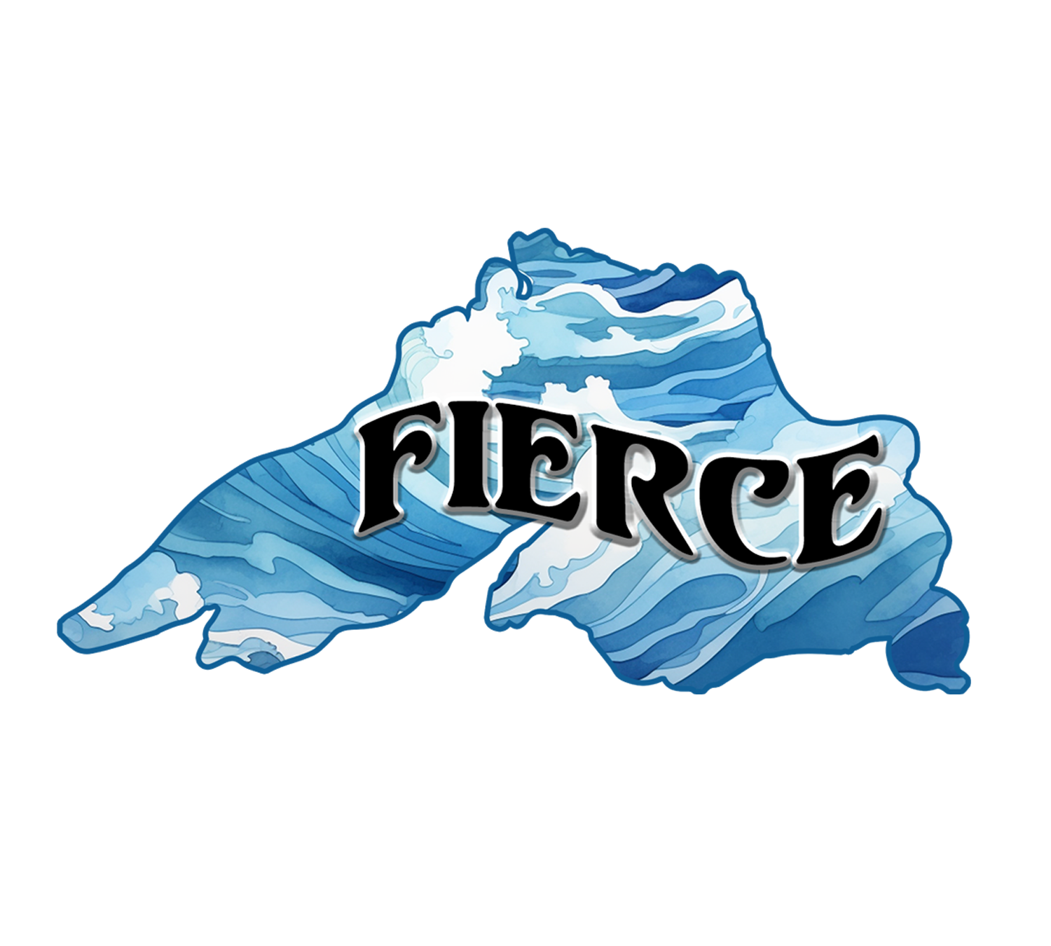 Lake Superior magnet features the word "Fierce" against the shape of Lake Superior with blue waves crashing.
