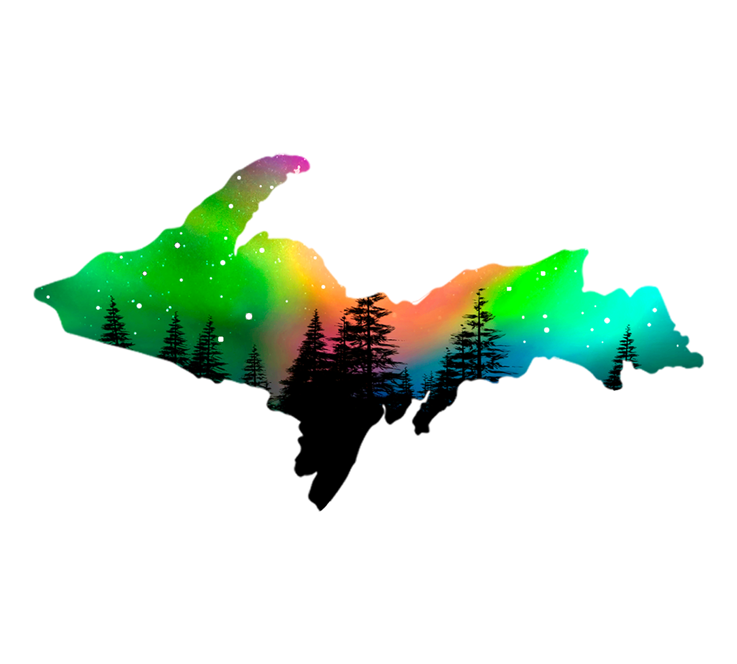 The northern lights fill the shape of the Upper Peninsula of Michigan in this pretty multi-colored sticker.