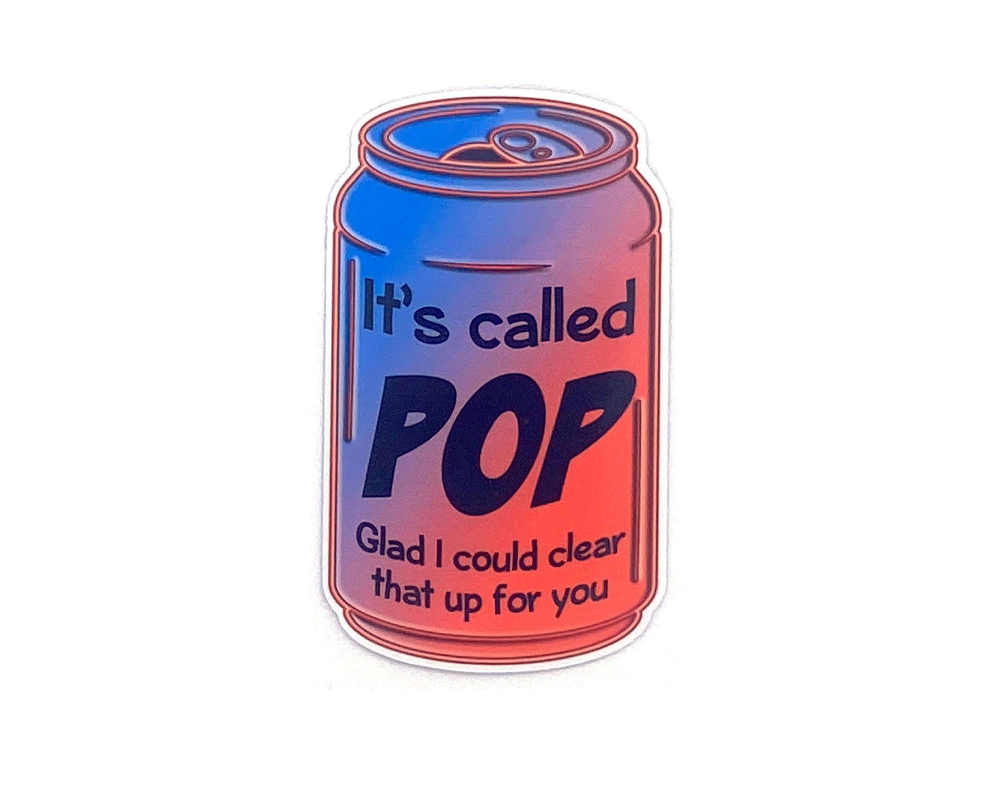 Sticker/magnet features the words "It's called POP, glad I could clear that up for you" with either a can of lemon-lime pop or cola. NOT soda.