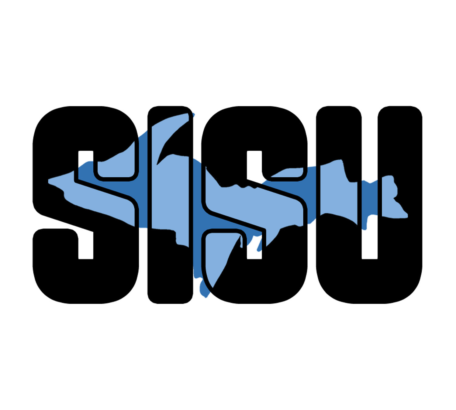 Finn sticker features the word "SISU," which is a Finnish word that basically translates to strength, endurance, perseverance, and grit. The word is entwined with the shape of the Upper Peninsula of Michigan, where there is a large settlement of Finnish descendants.