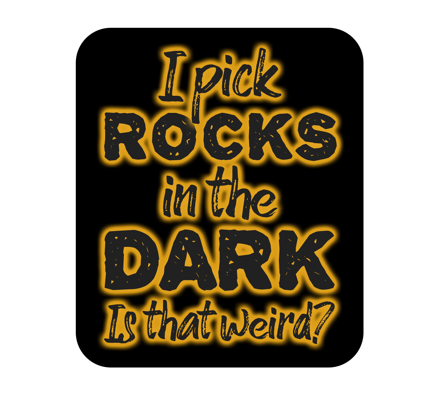 Geology magnet features the words "I Pick Rocks in the Dark - Is That Weird?" This refers to the practice of searching for sodalites, usually on the shores of Lake Superior and the other Great Lakes with a black/UV light to find the glow-in-the-dark rocks.