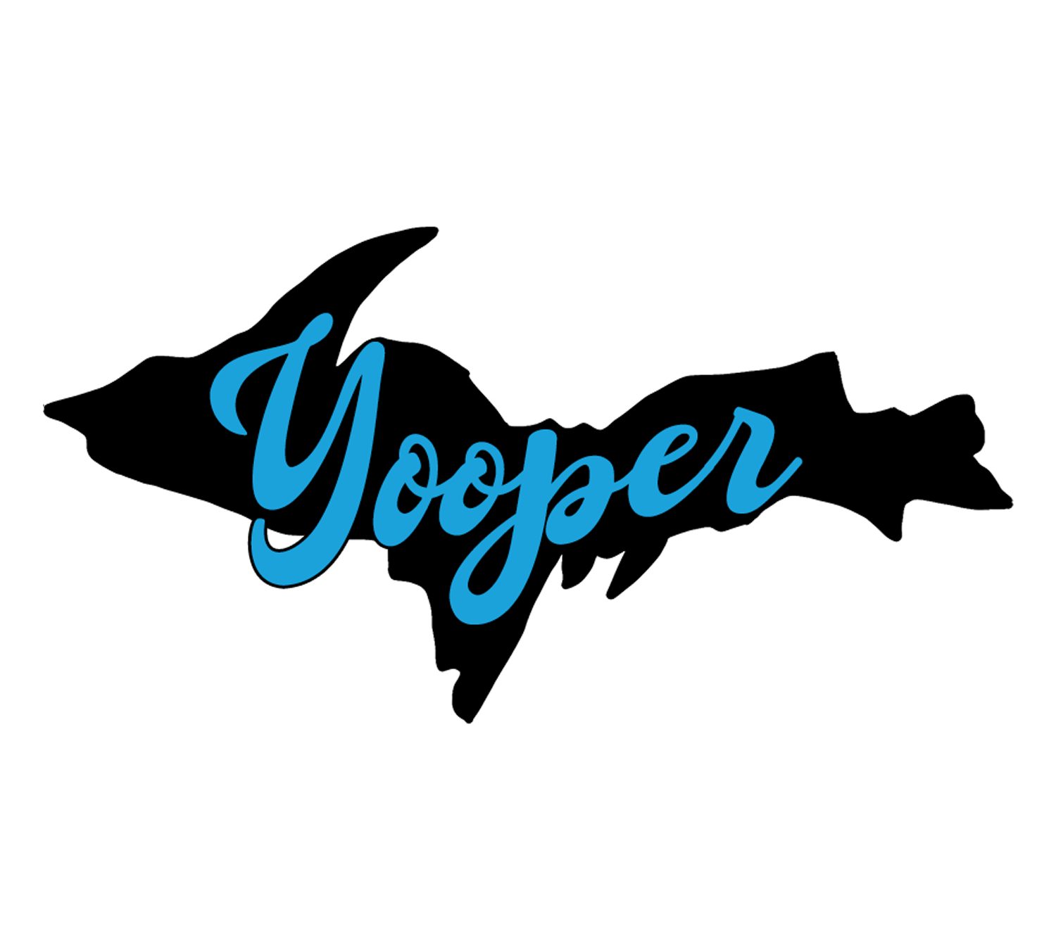 Upper Peninsula sticker features the word "Yooper" in blue against the shape of the U.P.